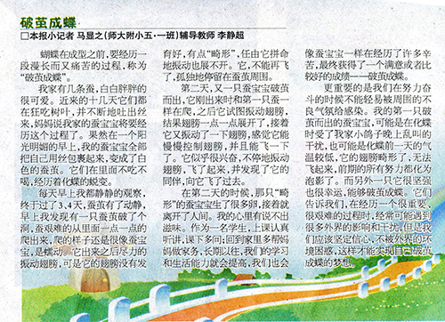 平原晚报:河师大附小学生马显之作文《破茧成蝶》