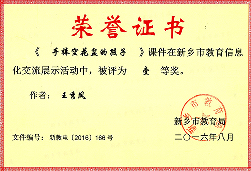 我校王秀凤老师在新乡市教育信息化交流展示活动中荣获一等奖