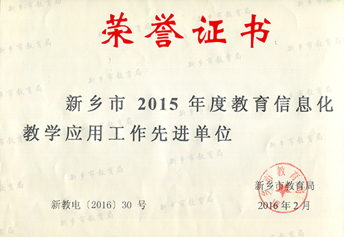 我校荣获新乡市2015年度教育信息化教学应用工作先进单位