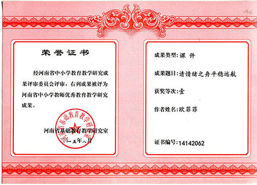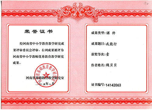 我校欧菲菲、魏贝贝老师经河南省中小学教育教学研究成果评审委员会评审,,课件被评为河南省中小学教师优秀教育教学研究成果。
