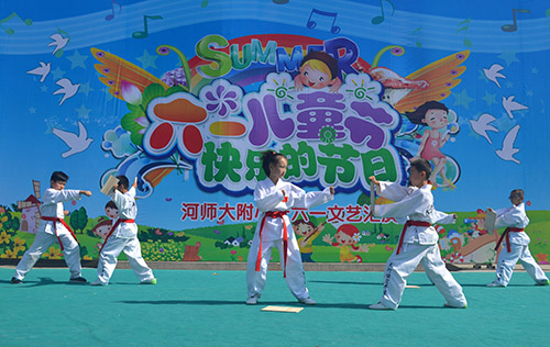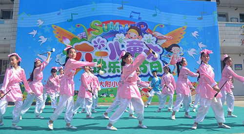 全校共有16个节目,有朝气蓬勃的啦啦操表演,有姿势优美的舞蹈,有意境悠远的古诗朗诵,有刚柔并济的太极表演,有体现团队精神的合唱。每个孩子都参加了活动,每个参与的孩子都在活动中得到了锻炼,体会到了童年的快乐,都在参与中充实了自己,度过美好的节日时光。精彩丰富的节目的吸引了许多嘉宾、家长们的观看,整个表演过程笑声、掌声不断,整个操场成了一个欢乐的海洋。