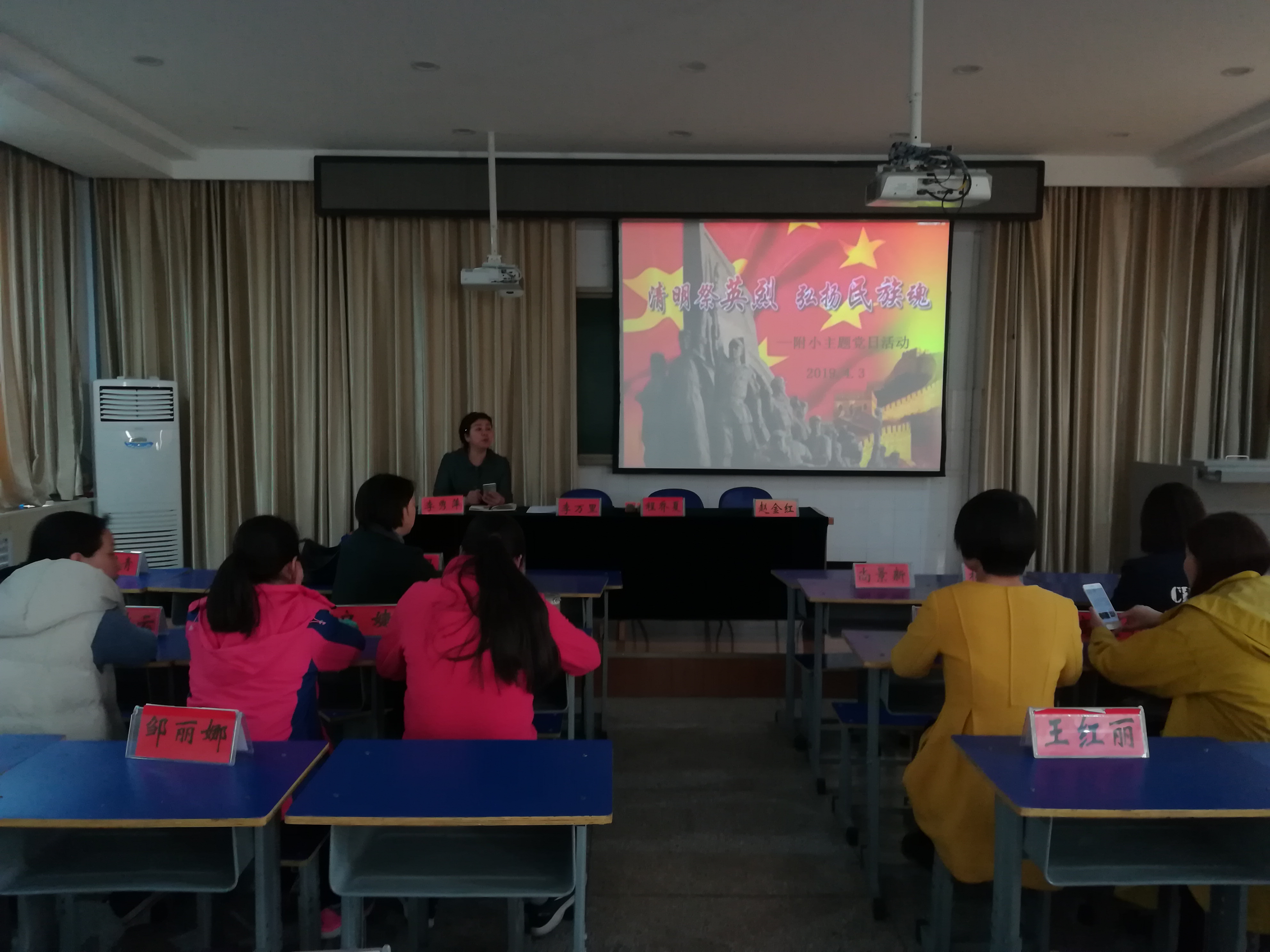 按照机关一总支要求,在清明节来临之际,为缅怀先烈,传承精神,开展“传承·2019清明祭英烈”活动,附属小学党支部开展“清明祭英烈,弘扬民族魂”主题党日活动。应到党员16人,实到党员12人。由支部宣传委员李秀萍主持。