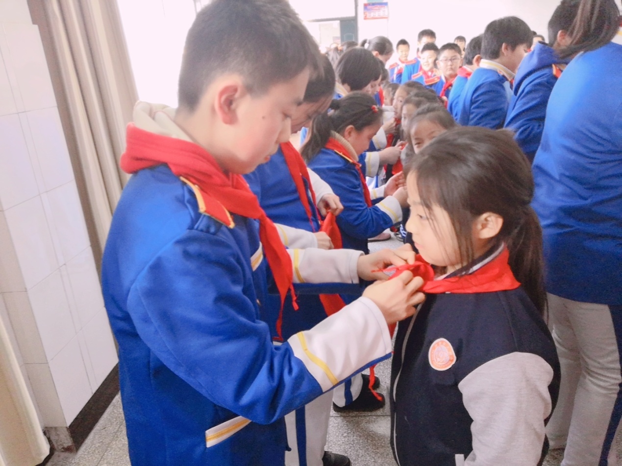 2019年12月27日,我校大队部隆重举行了一年级新生的入队仪式,一年级128名学生光荣地加入了中国少年先锋队组织。128名准备入队的一年级学生精神饱满,怀着欣喜和好奇,浑身充满着力量,唱起了响亮的《中国少年先锋队队歌》,六年级的大队干部们帮新生们佩戴红领巾,大队辅导员户老师授予中队旗。新队员们在红领巾的映衬下,个个神采奕奕,每个孩子的脸上洋溢着骄傲与自豪。