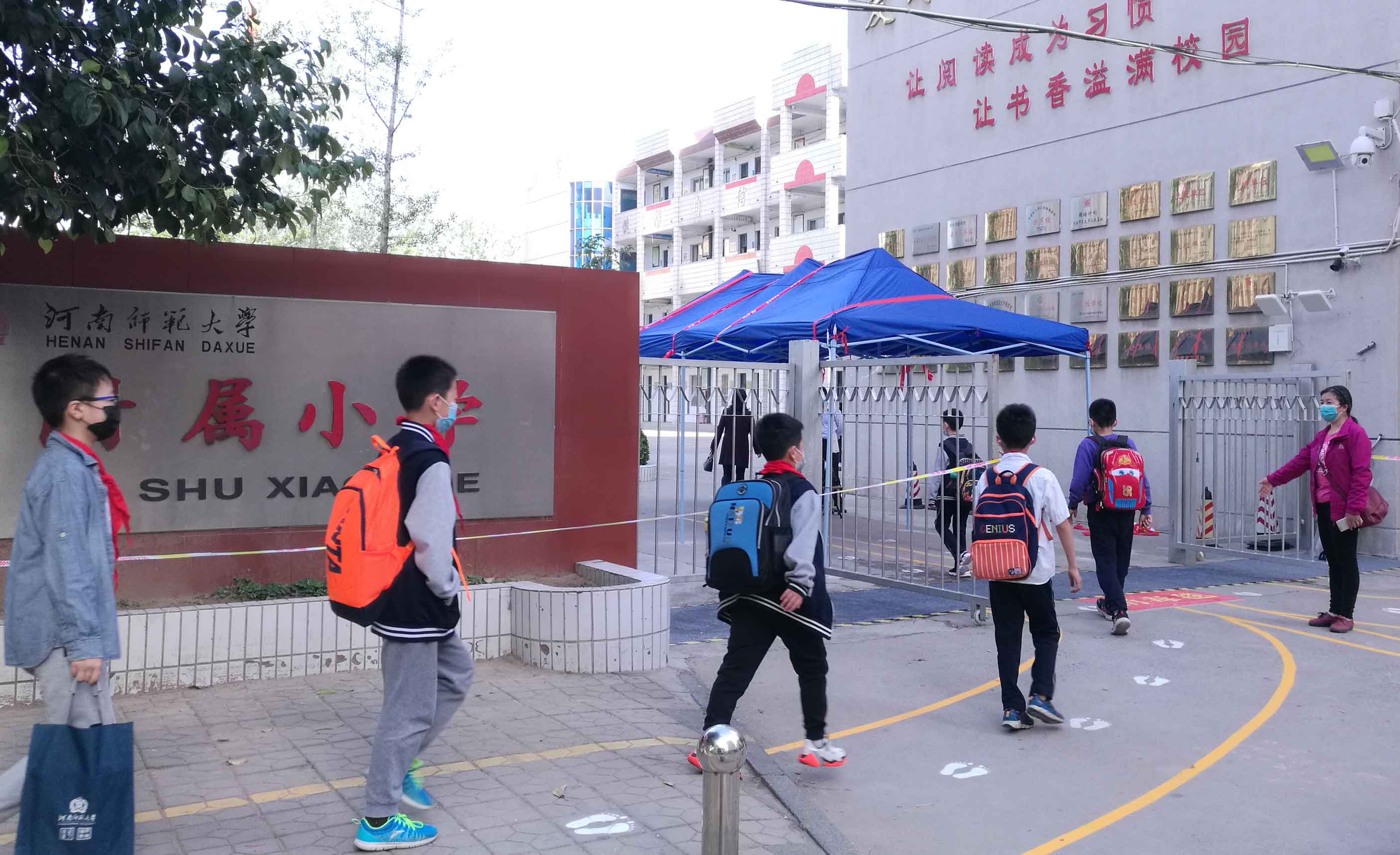 早上7:20,学校领导、值日老师、各班班主任各就各位,为迎接孩子们返校,做好了充分准备。陈广文书记、秦法跃主任亲自来校查看、指导第一天学生入学情况,并给予了工作上的肯定。