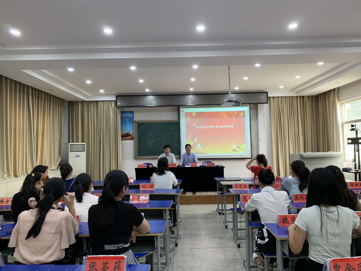 2020年6月28日下午,附属小学全体党员在四楼会议室开展“牢记初心使命、争当出彩先锋”为主题的支部党日活动。应到人数17人,实到人数15人,有两人请假。发展对象1人、积极分子2人参加学习活动。会议由党支部书记程乔夏主持。