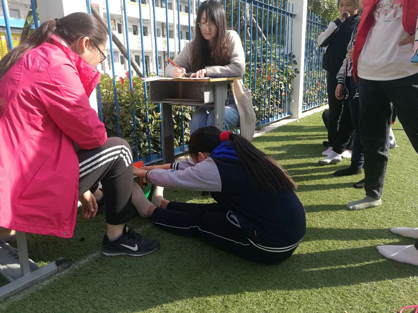 在本次达标运动会上,同年级段项目有所不同,共有50米、50×8往返跑、跳绳、坐位体前屈等项目。小运动员们发扬出了勇敢顽强的拼搏精神和良好的体育道德风尚。裁判员严肃认真, 高质量地完成了各个测试项目。