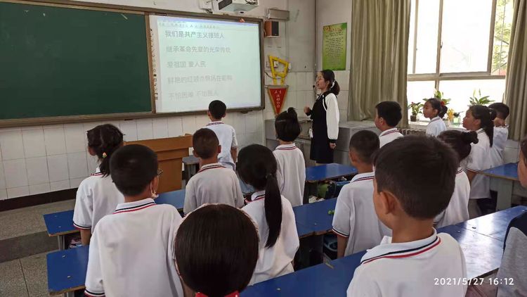 “准备着,为共产主义事业而奋斗!”“时刻准备着!”孩子们跟着户老师激情地呼号,铿锵有力的呼号声响彻在校园上空。