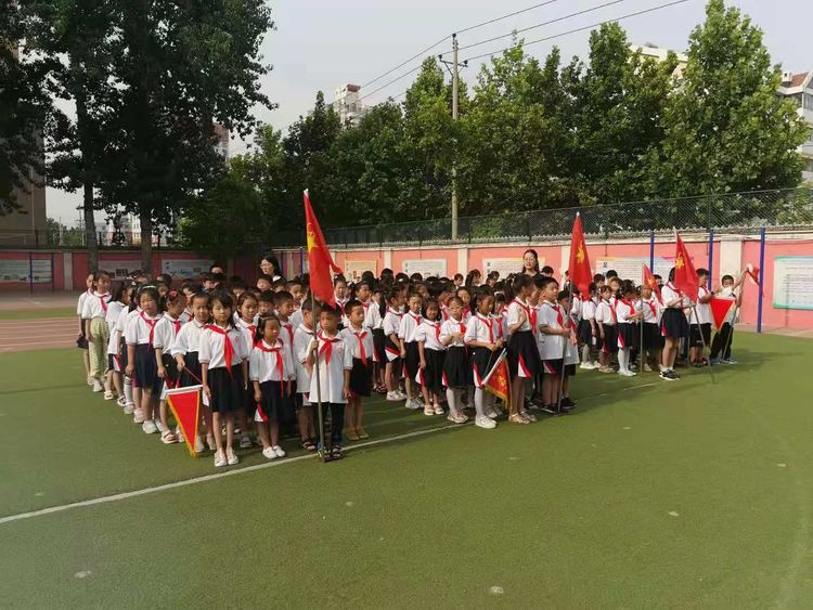 为庆祝中国共产党建党100周年,全面贯彻落实习近平总书记关于少年儿童的重要论述,切实增强少先队员的光荣感、使命感,培养少先队员爱党、爱国、爱社会主义的情怀,5月28日下午,河南师范大学附属小学举行了“童心向党 快乐成长”新队员入队仪式。本次活动共有134名小学生光荣加入中国少年先锋队,成为少先队组织的一员。