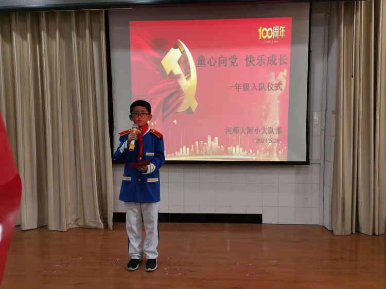 成为少先队员是一件光荣的事情,老队员马浩喻也带着满满的祝福来到现场。“真诚地希望新队员们,要时刻提醒自己,约束自己的言行;新老队员携起手来,相互学习,认真配合,一起为河师大附小增光添彩!”