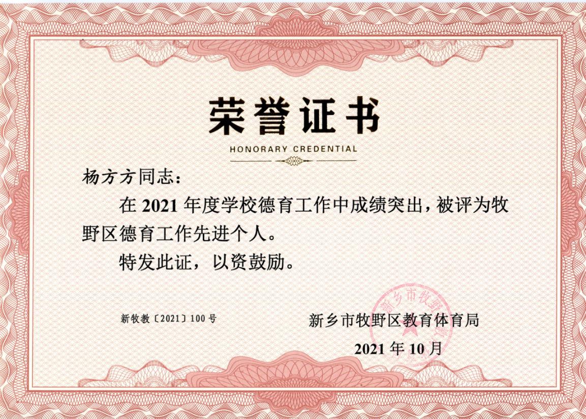 “一切为了学生,为了学生一切。”寇亚品和杨方方老师注重全面贯彻党的教育方针,落实好《中小学德育纲要》、《中小学生守则》和《中小学生日常行为规范》,结合学校和学生实际,积极探索规律,创新方法,守好班级这个德育工作主阵地,让学生形成了良好的行为习惯,营造了一个文明、和谐的学习氛围。