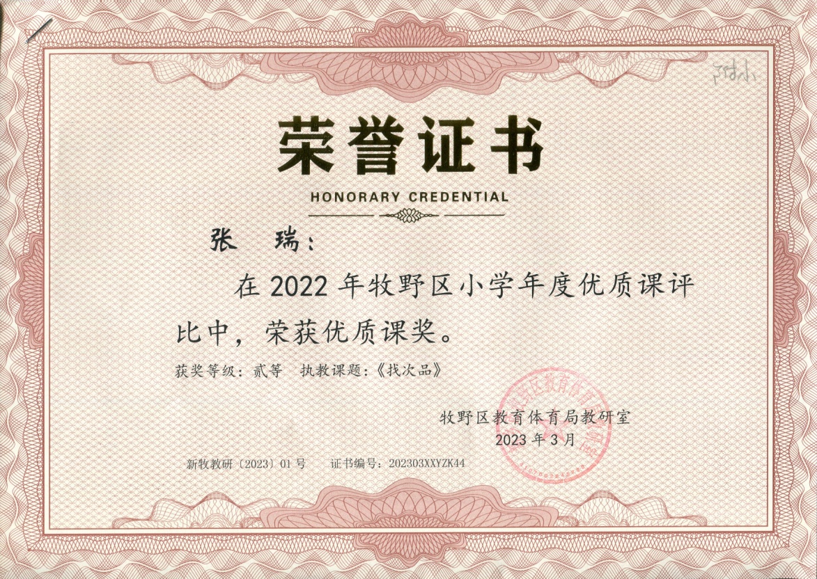 在牧野区小学年度优质课评比中,我校语文组胡慧敏老师执教的《囊萤夜读》,数学组张瑞老师执教的《找次品》,分别获得二等奖。