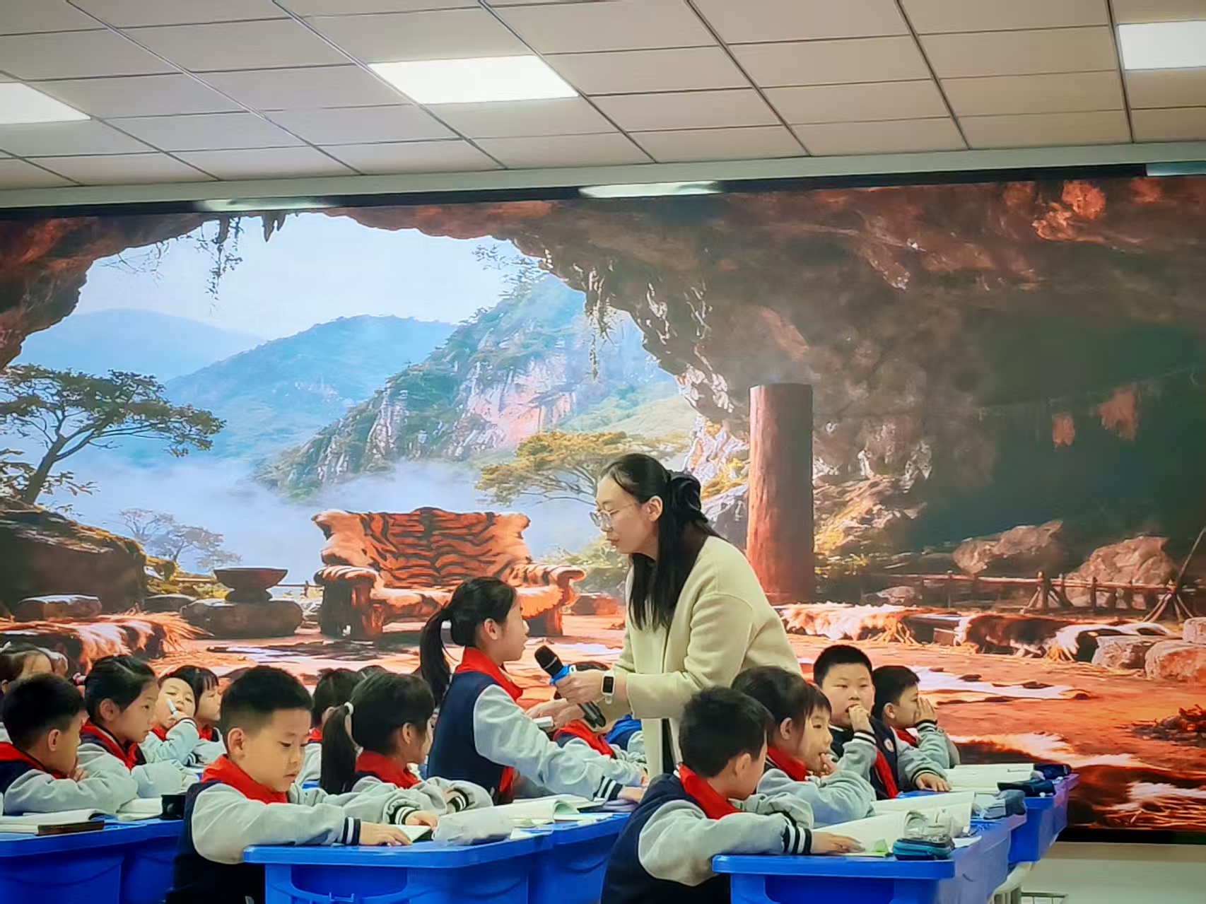 首节课由张喜妹老师与三(1)班同学共同呈现《不一样的你我他》。课堂气氛活跃,张老师精心设计《大风吹》《荒岛求生》等互动游戏,引导学生在欢声笑语中发现并欣赏彼此的独特之处。整节课在轻松愉悦的氛围中,潜移默化地培养了学生尊重差异、悦纳自我的品格,展现了思政教育与游戏活动有机融合的独特魅力。
