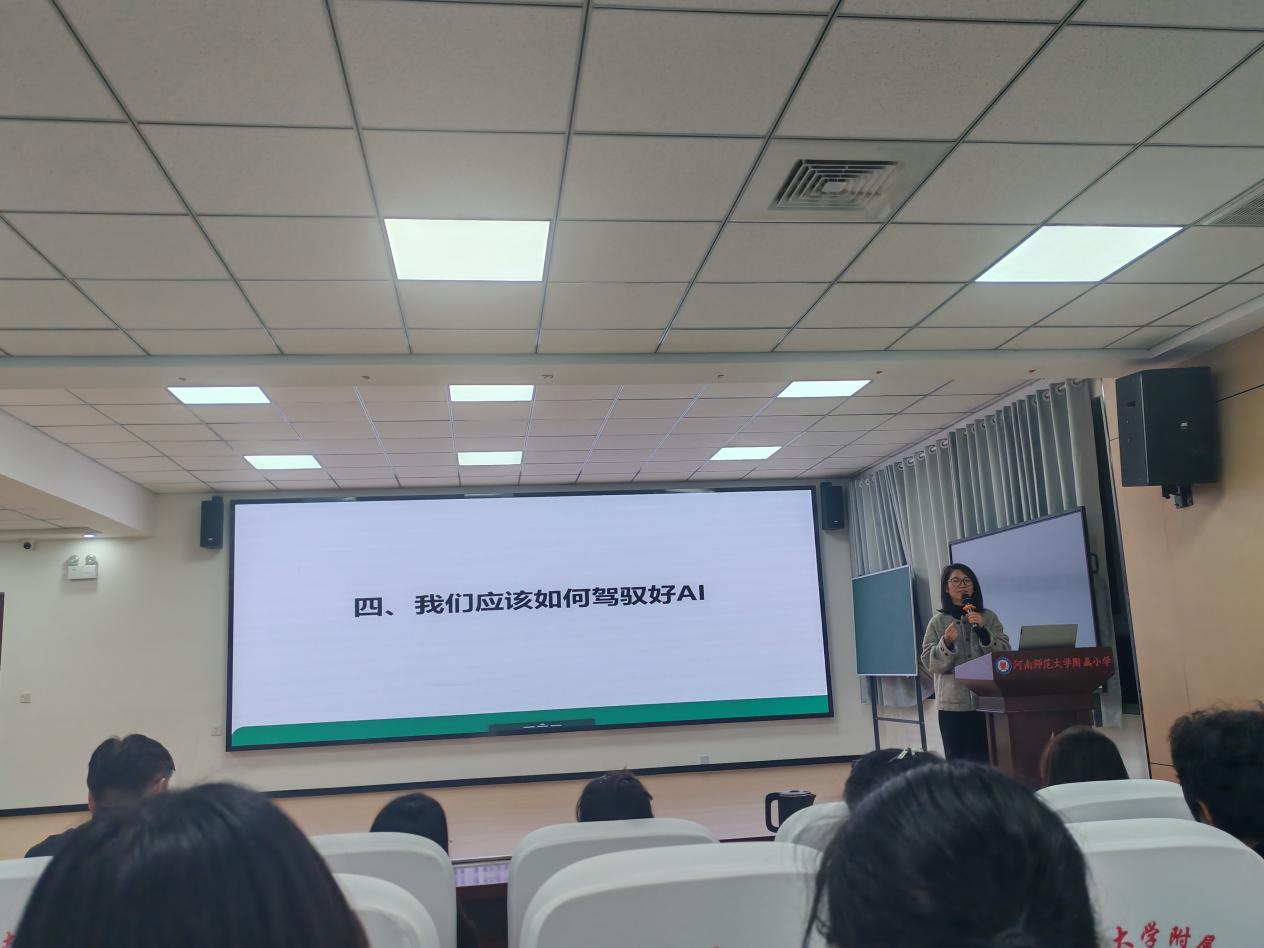 讲座尾声,在谈到“我们应该如何驾驭好AI”时,卜教授引用马云的话“很多人输就输在对于新兴事物,第一看不见,第二看不起,第三看不懂,第四来不及”,勉励全体教师主动拥抱AI技术,积极探索AI与学科教学的深度融合路径,让AI真正服务于教学提质、学生成长。