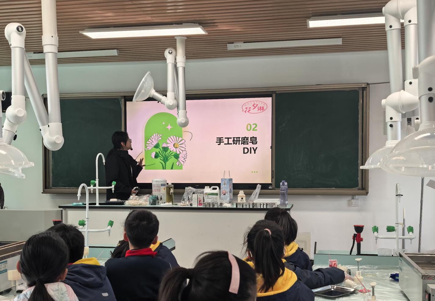 活动结合学生的认知特点与安全规范,精心设计了实践课程。选取天然植物油脂、蜂蜡等安全原料,开设 “手工研磨皂” 课程;又为学生量身打造 “创意口红制作” 体验,选用食品级色粉、维生素 E 等成分,更特别准备了多种款式的口红盒子,以抽盲盒的形式供同学们选择,兼顾趣味性与互动性,充分调动参与热情。