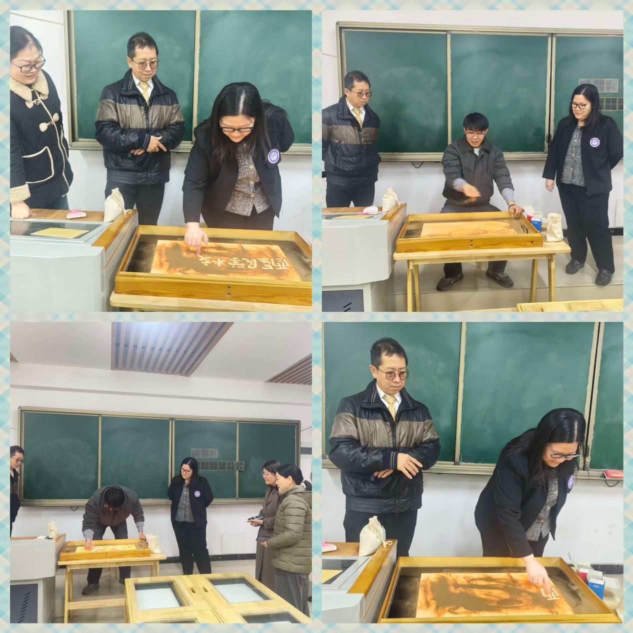 在沙画教室,申书铭老师现场进行了精彩的沙画创作示范,瞬息万变的沙画艺术让来宾们赞叹不已,纷纷参与其中。