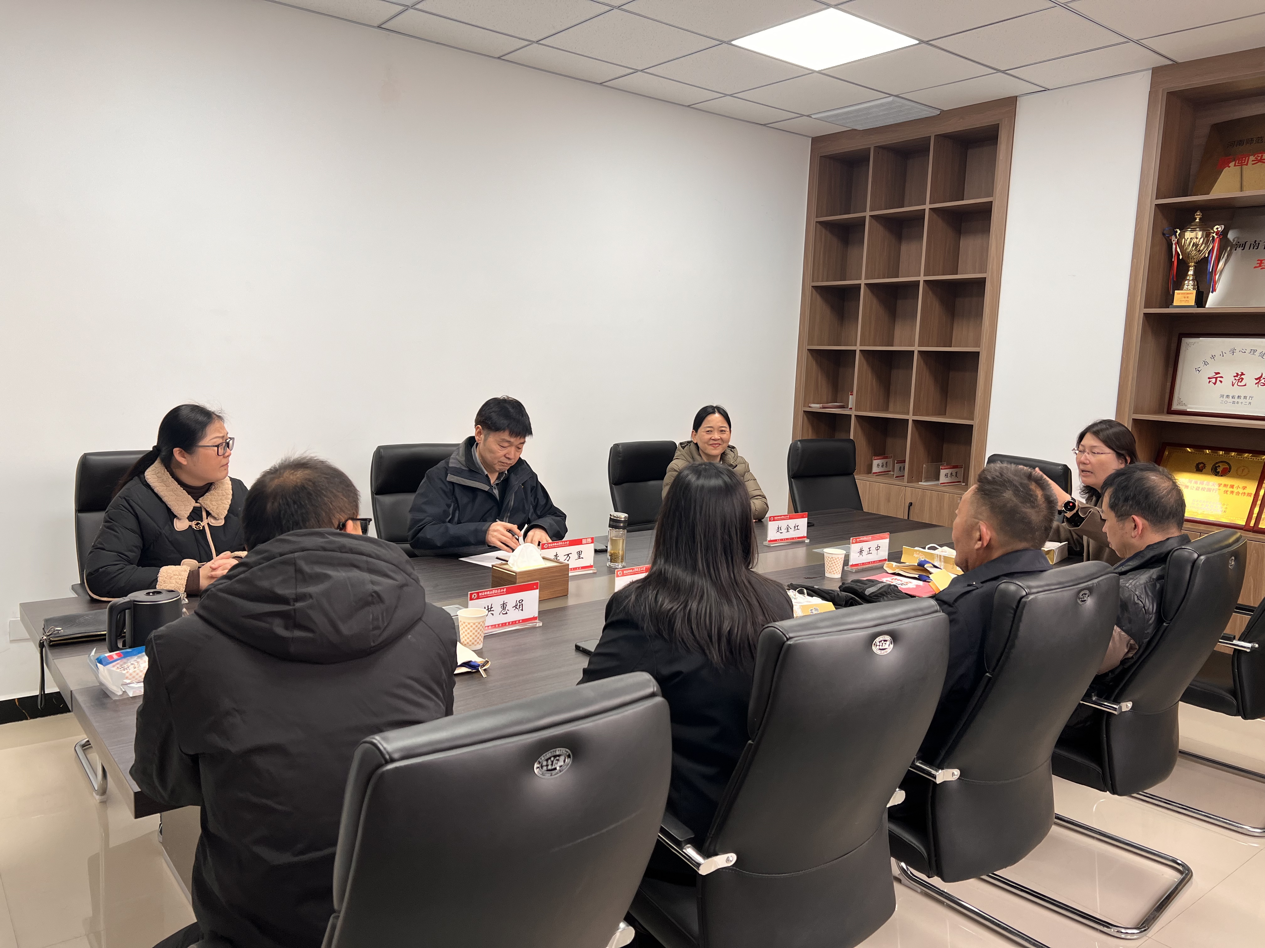 2025年11月17日下午,河南师范大学国际教育学院院长赵扬、李英臣老师陪同泰国醒民学校校董会主席黄伟健、校董会副主席黄正中、中文部校长及孔子课堂外方负责人洪惠娟一行莅临我校进行交流访问。我校李万里校长、赵金红副校长、户婕副校长等领导老师热情接待了远道而来的客人。