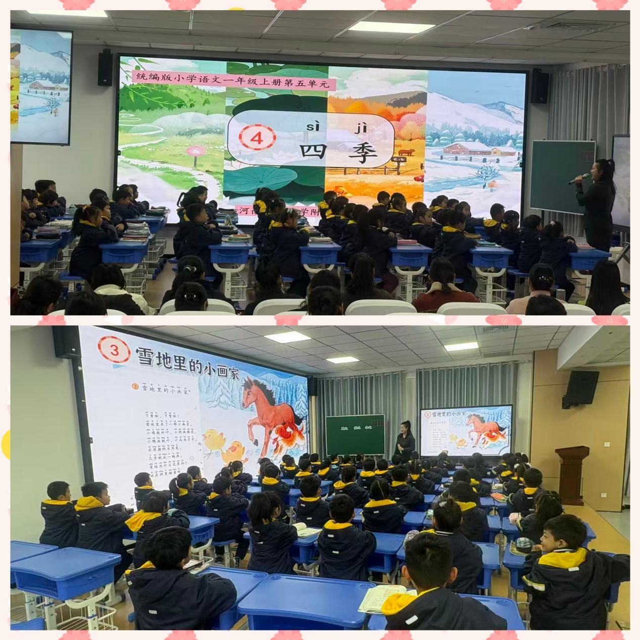 第一节课,孙倩老师与一(5)班活泼可爱的孩子们一起走进《四季》。孙老师用充满童趣的语言和丰富的肢体动作,带领孩子们在美妙的诗歌中感受四季轮回,课堂充满欢声笑语。
