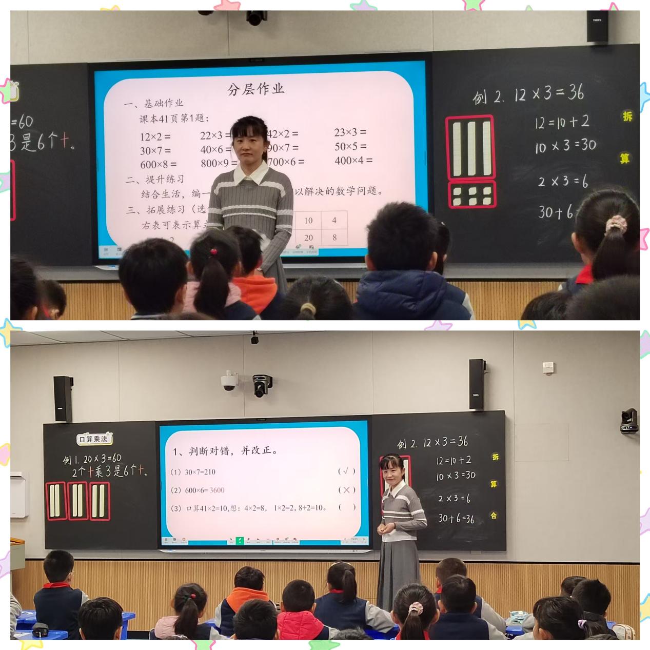 第一节课,李娜老师与三(6)班的孩子们共同探索了《口算乘法》,课堂气氛活跃,孩子们在轻松的游戏和互动中掌握了运算技巧,夯实了计算基础。