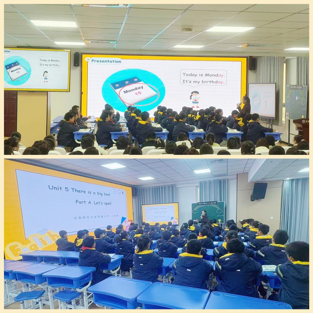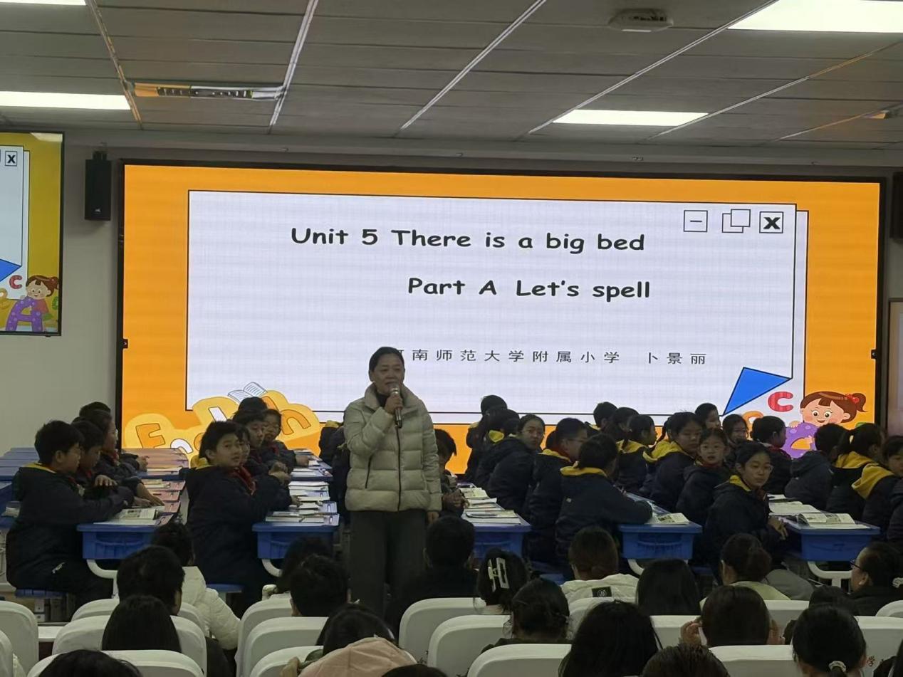 卜景丽老师带领五(2)班的孩子们,畅游在英语的世界《There is a bed》。精美的课件、流利的口语、层层递进的活动设计,瞬间吸引了所有见习生的目光。孩子们在情境中自然习得语言,在互动中自信表达,展现了沉浸式学习的魅力。课堂节奏明快,气氛活跃,师生间默契的配合与高效的互动,赢得了在场师生的一致赞赏。