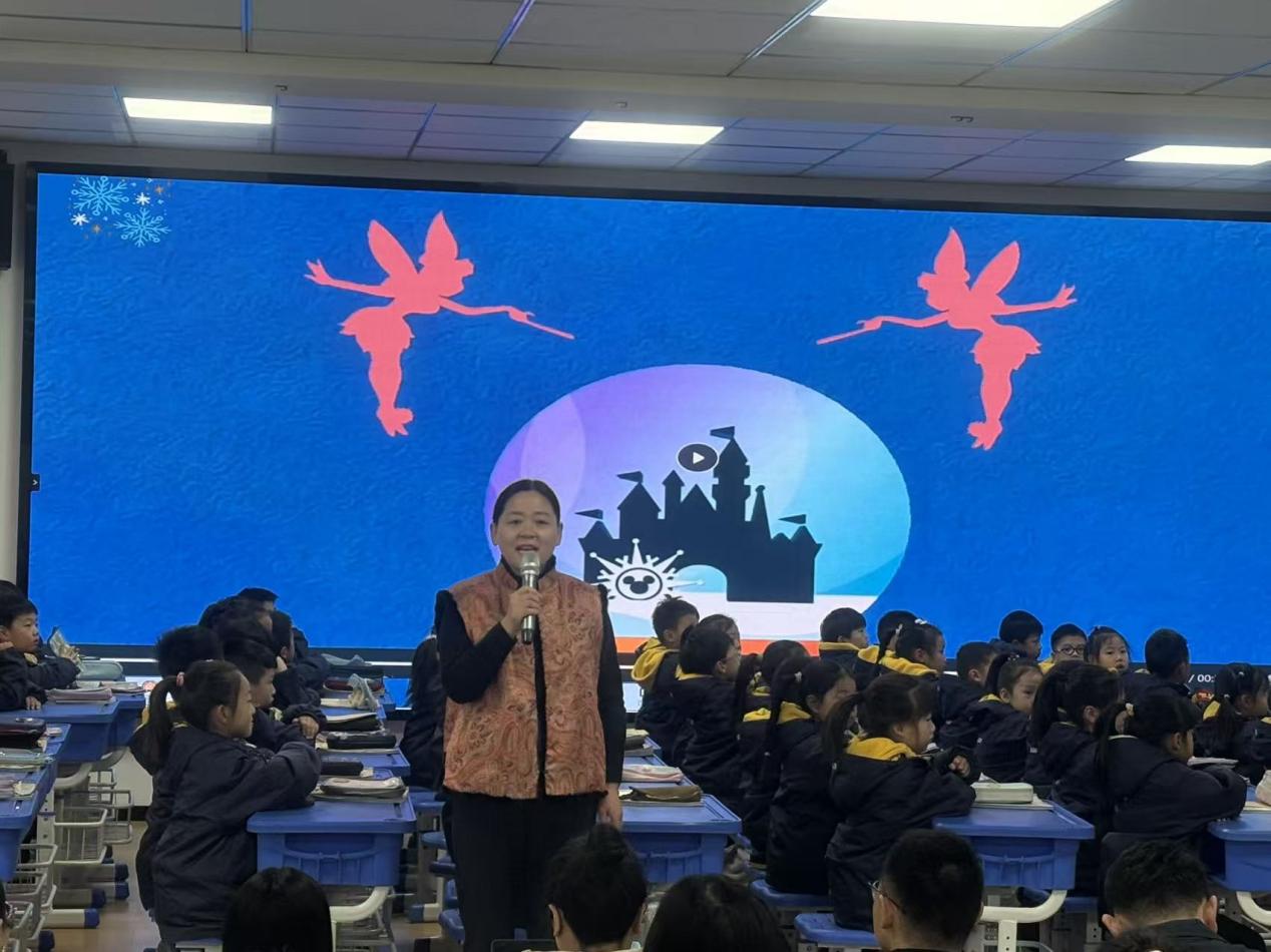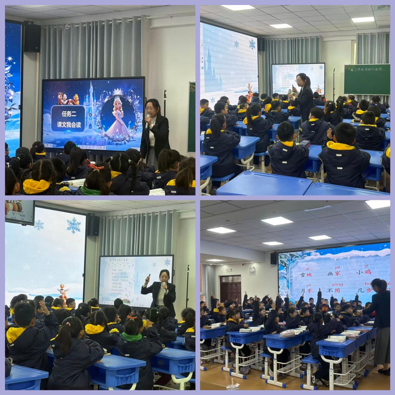 第一节课,王凌莉老师与一(5)班的小朋友,共同呈现了生动有趣的语文课《雪地里的小画家》。课堂以学生熟悉的《冰雪奇缘》丽莎公主创设情境,迅速点燃学习热情。围绕“词语我会认、课文我会读、生字我会写”三大任务,王老师巧妙设计教学环节,尤其是“随文识字”方法贯穿课堂,让学生在阅读中自然理解、在语境中轻松记忆,充分展现了低段语文教学的情趣与智慧,也给见习生们留下了深刻印象。