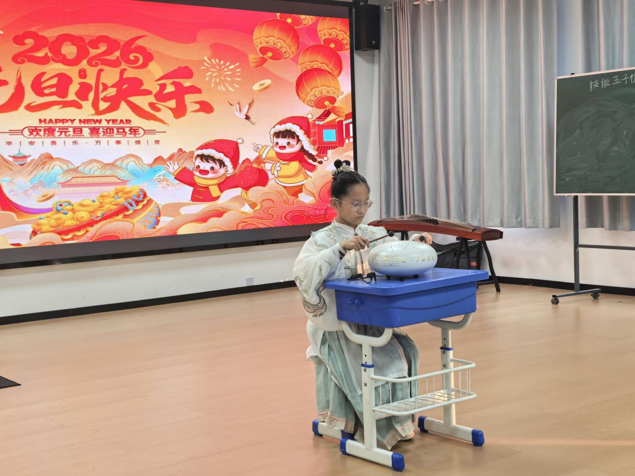 五(3)班徐千惠同学的古筝演奏《天地龙鳞》,筝声悠扬古朴,时而低回婉转,时而高亢豪迈,尽显传统民乐的独特魅力。