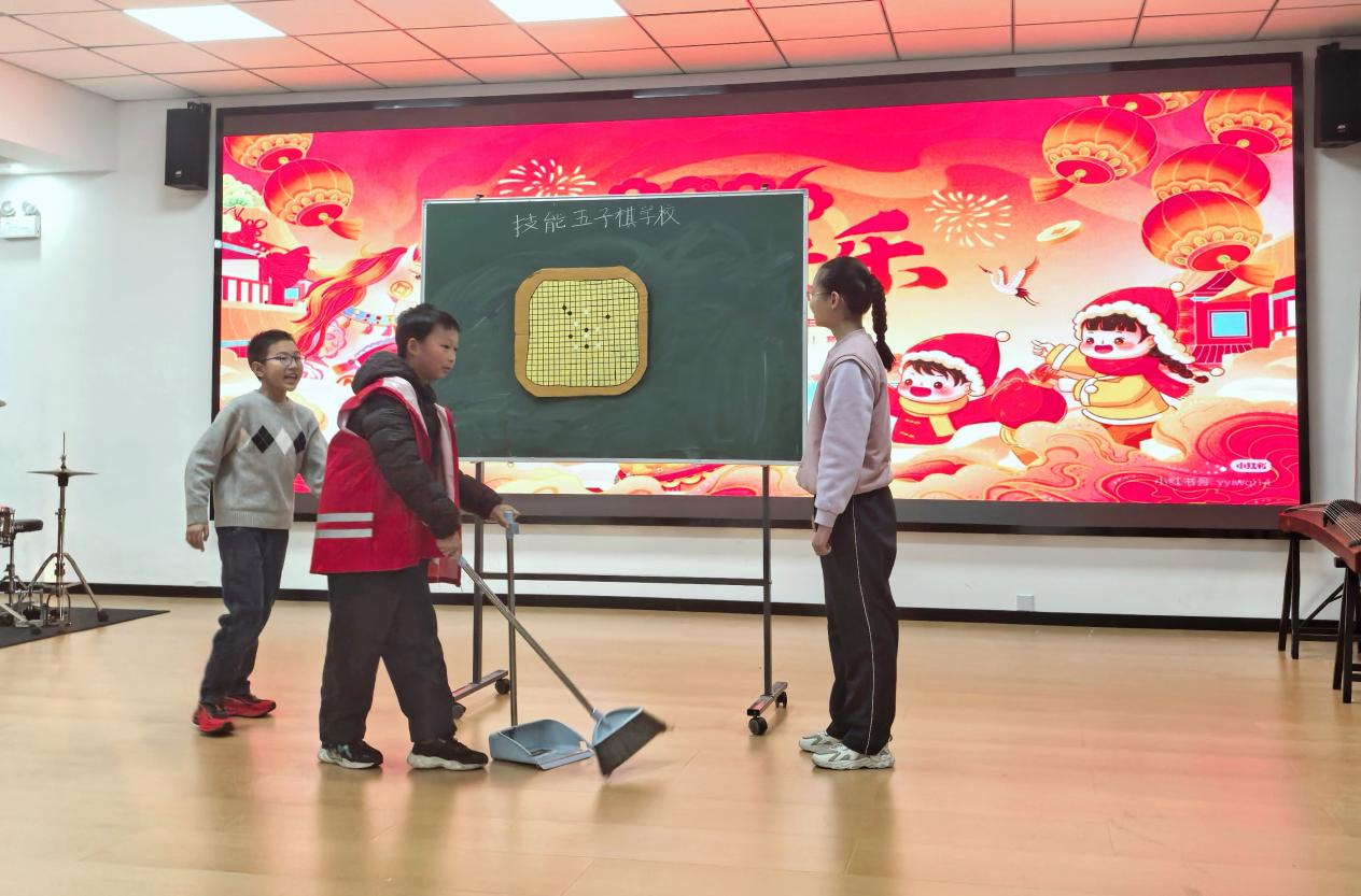 五(1)班何沛桢、王悦轩、徐英淇、安宏宇四位同学带来的小品《五子棋》,取材校园生活,台词幽默诙谐,表演生动传神,引得台下同学们捧腹大笑。