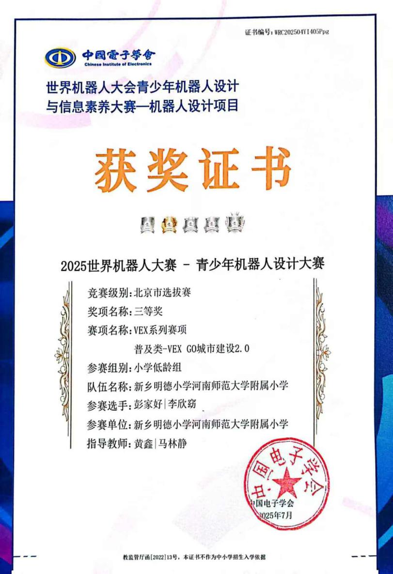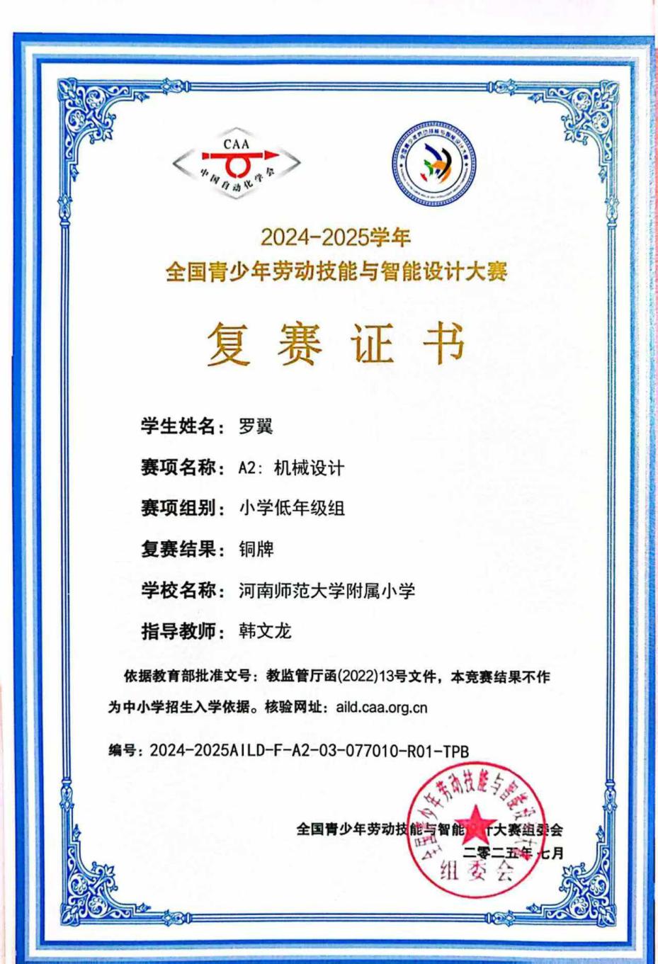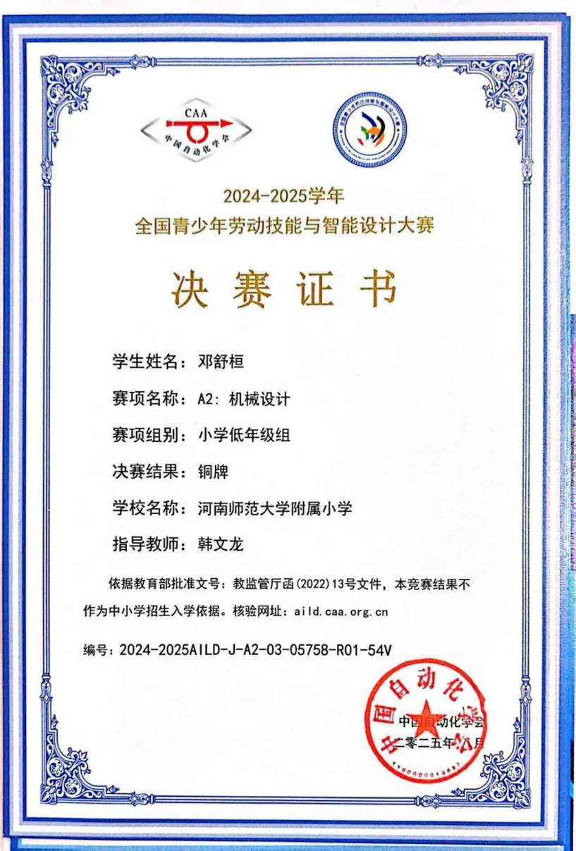 此次获奖是河南师大附小坚持“五育并举”、深耕科创教育的生动成果。长期以来,学校积极开设编程、机器人等科创特色课程,举办校园科技节、创客作品展等丰富活动,为学生搭建起实践创新的广阔平台。未来,学校将继续深化科创教育,助力更多少年在科学探索的道路上勇攀高峰,成长为兼具科学素养与创新能力的新时代好少年。