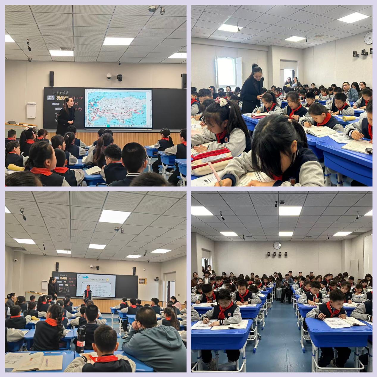 第三节,宋思思老师带领三(5)班学生探寻《纸的发明》。她以精美课件梳理发明历程,设计三大核心任务,结合自主学习、小组合作等形式,充分调动学生参与度。最后,学生化身“纸文化代言人”分享所学,实现知识与文化浸润的双重目标。