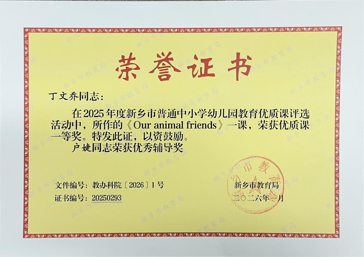 在2025年度新乡市普通中小学幼儿园教育优质课评选活动中,我校两位教师凭借扎实的教学功底、创新的教学设计与灵动的课堂呈现,双双斩获市级一等奖,用实力书写了附小教师的专业风采与育人担当。