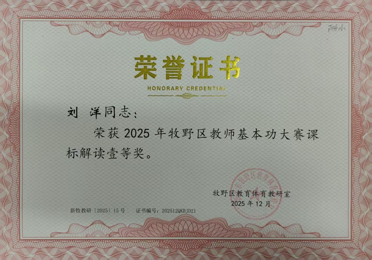 在2025年12月牧野区教师基本功大赛中,我校教师凭借扎实的专业素养和出色的赛场表现斩获佳绩。刘洋老师荣获语文课标解读类一等奖,杨爽老师荣获语文解读能力类二等奖,刘玉友老师荣获数学课标解读类二等奖。 此次获奖充分展现了我校教师过硬的教学基本功与专业成长成果。学校将继续深耕教师队伍建设,助力教师专业发展,不断提升教育教学质量。 (教导处)