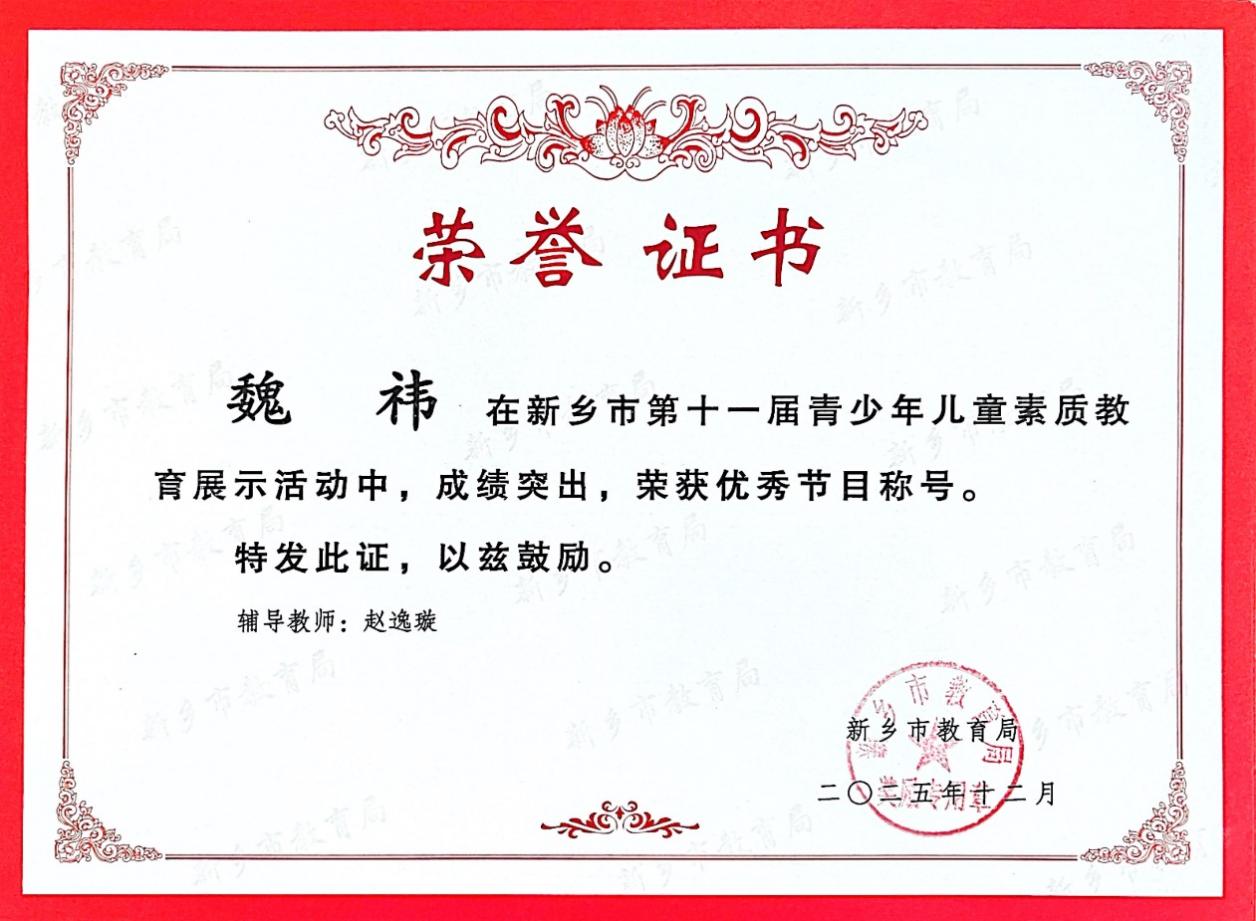 我校学子在新乡市第十一届青少年儿童 素质教育展示活动中斩获佳绩