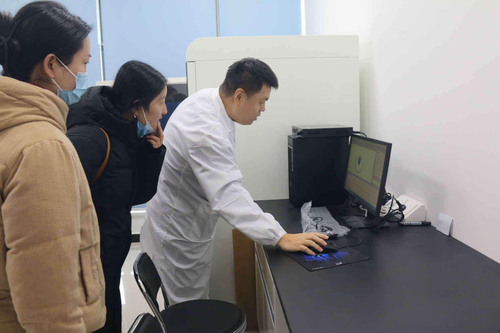 在参观过程中,聂国兴副校长一行听取中心副主任陈卓关于中心近年来在服务支撑、平台建设、技术保障等方面的工作成效与职能定位汇报,并实地走访大型仪器设备实验室。重点了解600 MHz核磁共振波谱仪、亚细胞代谢分析系统、气相色谱四极杆静电阱混合质谱仪等高端设备的服务方向、测试项目及运行管理模式。中心技术人员现场演示了部分仪器的操作流程。