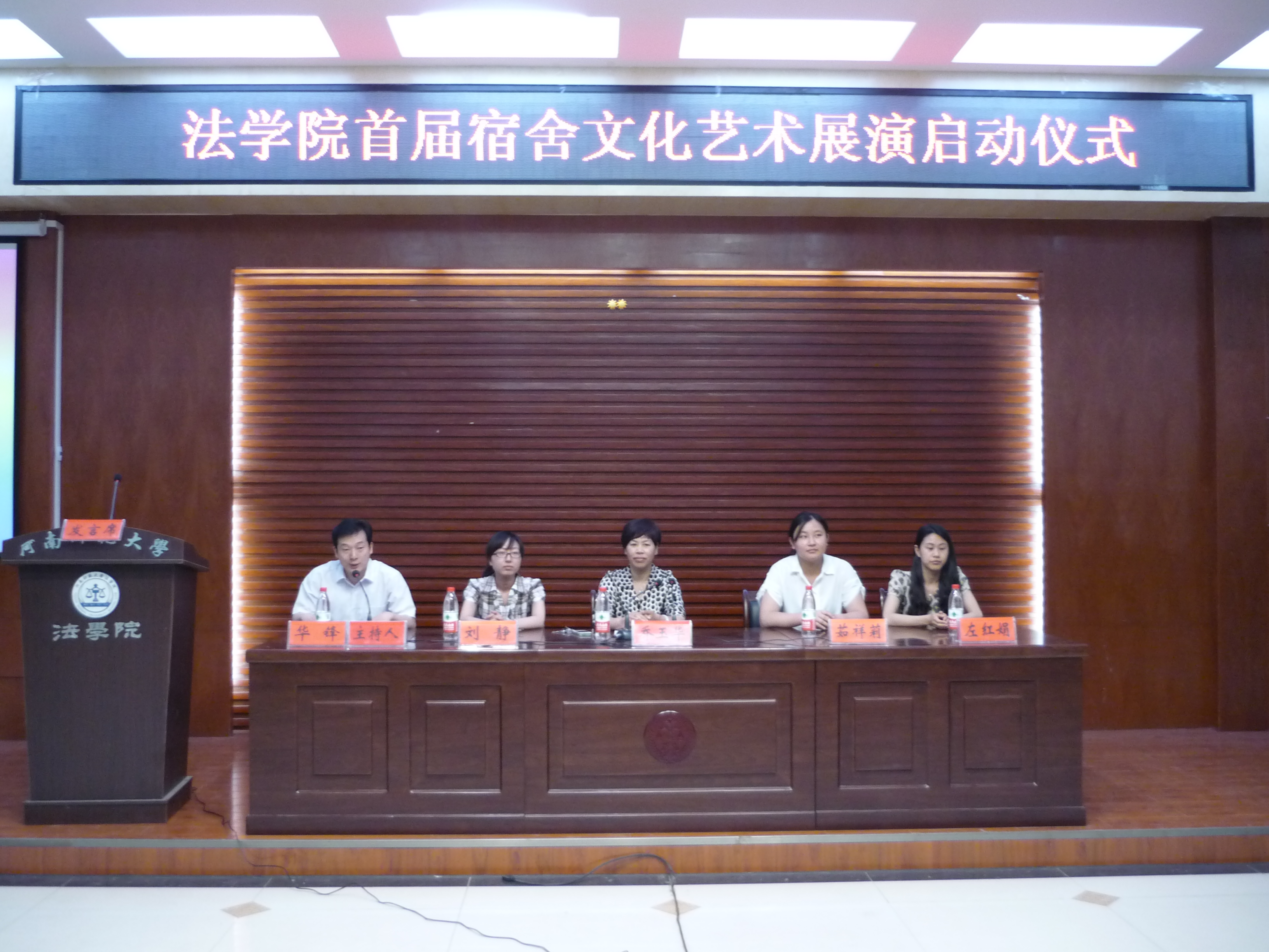 为进一步活跃宿舍文化生活,营造生动活泼、健康有益的宿舍文化氛围,5月17日上午,法学院在模拟法庭举办以“欢庆建团九十载,青春宿舍展风采”为主题的首届宿舍文化艺术展演的启动仪式。法学院党总支副书记乔玉华,,2009级辅导员茹祥莉,2010级辅导员刘静,2011级辅导员左红娟应邀出席。仪式由团委书记华锋老师主持,2011级全体学生积极参加。