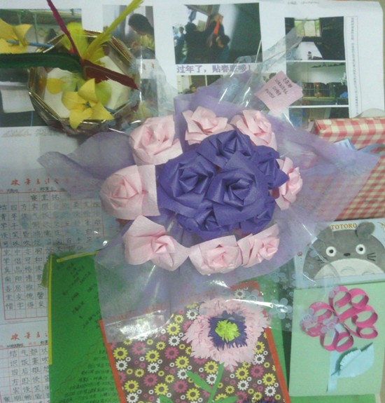 本活动是法学院首届宿舍文化艺术展演系列活动之一,同学们踊跃参加、集思广益,设计各式各样的宿舍文化艺术作品。征集的作品形式有手抄报、摄影、书法、绘画、手工制品等文化艺术作品。其中,石晓娜同学制作的一束纸质插花,样式独特、充满韵味,六朵花紧密相联,象征宿舍成员之间的凝聚力;王丹丹同学用灵巧的双手制作了一个精美别致的贺卡;于晓东同学的摄影,把宿舍成员的生活和学习状况展现在图片上,充分体现了宿舍良好的文化氛围。