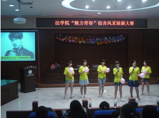 为了展现我院学生宿舍生活及当代大学生健康向上的精神风貌,形成良好的宿舍文化氛围,6月2日晚,法学院在模拟法庭举行“魅力青春”宿舍风采展演大赛。法学院2011级优秀宿舍积极参加,2011级辅导员左红娟应邀出席了此次活动。