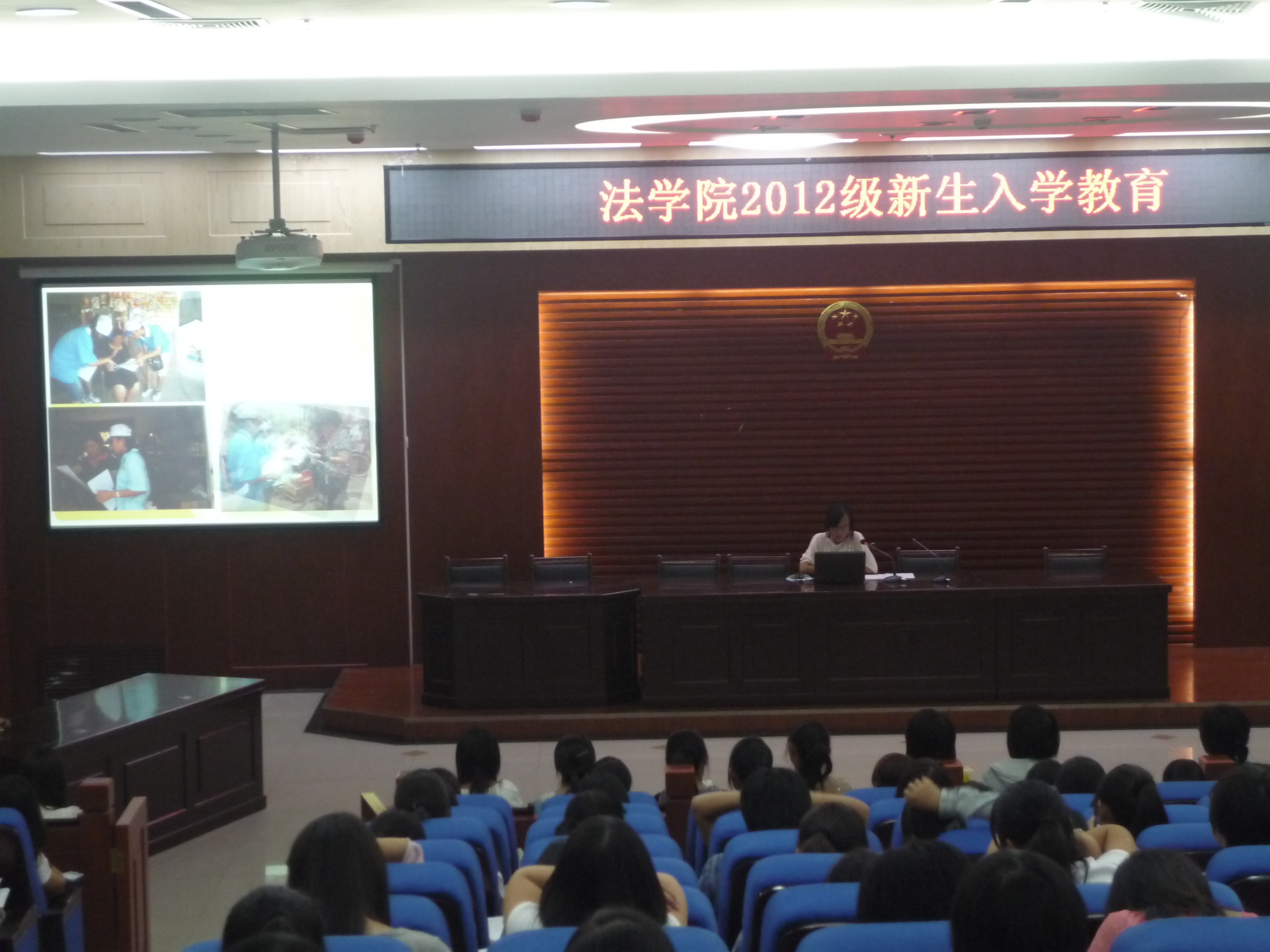 为提高法学院新生对社会实践的认识,9月25号晚,法学院新生入学教育之三——暑期社会实践巡回演讲报告会第一站“实践话收获,学子共成长”活动在模拟法庭举行。法学院团委书记华锋应邀出席,2012级全体新生参加了此次活动。