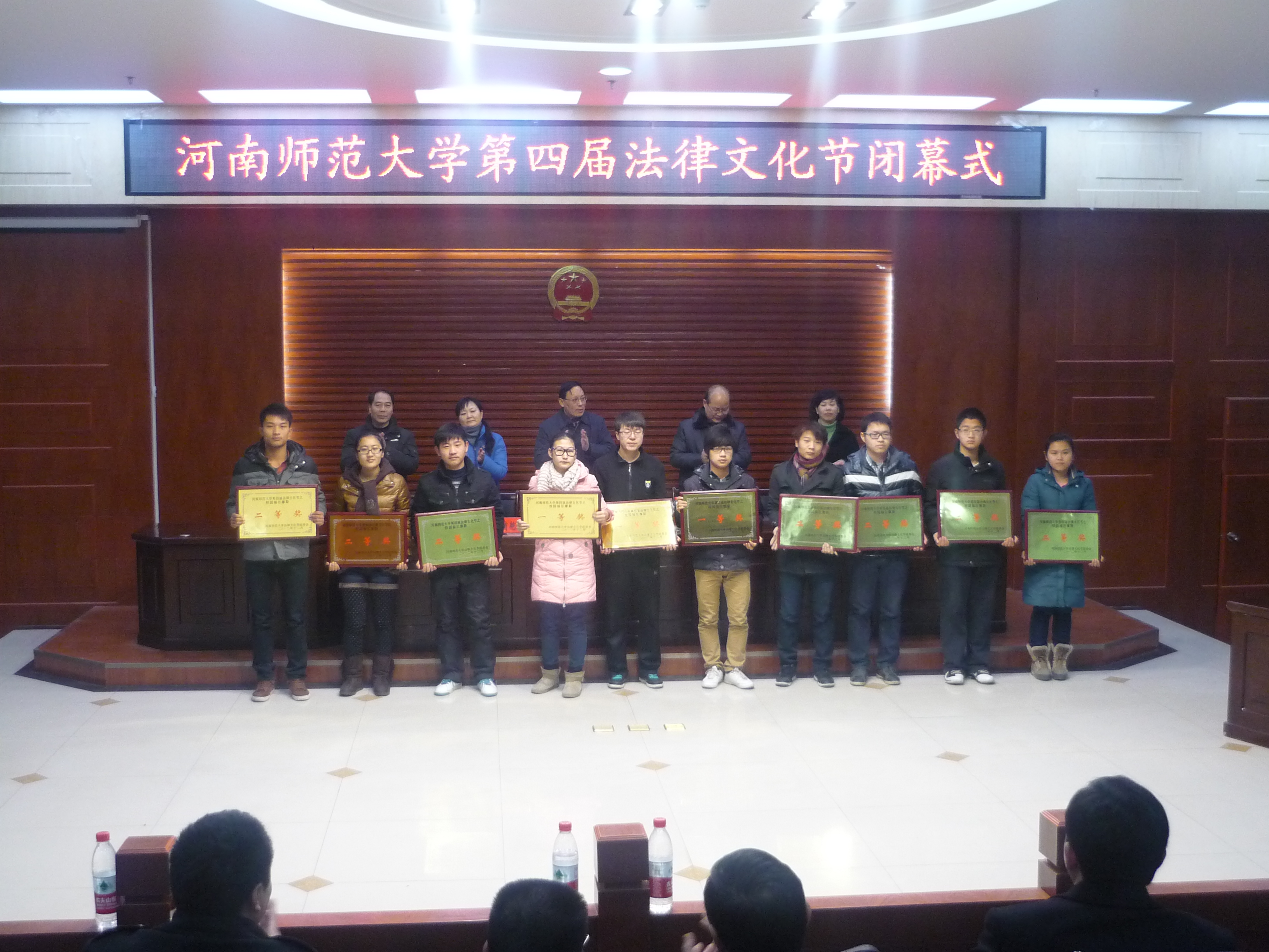 | 12月12日,历经近一个月的河南师范大学第四届法律文化节圆满落下帷幕,上午9点,第四届法律文化节闭幕式在东区模拟法庭成功举行,法律文化节组委会副主任、法学院院长黄进才,学生处副处长皇甫艳玲,法学院党总支书记谢华,法学院党总支副书记乔玉华,法学院副院长韦留柱,各学院学生工作负责人和政工干部、学生代表参加闭幕式。仪式由法学院党总支书记谢华主持。 首先,由学生处副处长皇甫艳玲老师宣读河南师范大学第四届法律文化节表彰决定,她代表学生处对本次法律文化节取得的成绩给予充分的肯定,对积极参与本次文化节的各个学院及同学们表示感谢。 接着,与会领导为获奖学院和个人颁发奖状和证书。本次法律文化节共选出法学院、音乐舞蹈学院、商学院等八个学院优秀组织奖,以及法律智多星、校园福尔摩斯、法律论坛、法治手绘漫画、征文等五项集体和个人奖项。各位领导对获奖学院和学生代表表示衷心的祝贺。 随后,法律文化节组委会副主任、法学院院长黄进才致闭幕辞。黄院长代表法学院全体师生,对支持本次文化节的相关领导以及学院表示感谢,之后,黄院长对第四届法律文化节进行了全面梳理和总结,对各项工作取得的成绩进行了高度评价,也对法学院下一步的工作提出了殷切的希望,他指出,希望在座各位师生能够深入学习贯彻党的十八大精神,把普法宣传工作常规化、制度化、系统化,继续做好普法宣传工作,为建设法制校园作出应有的贡献。 最后,法学院党总支书记谢华对本次闭幕式作了总结,他说:“我们将以法律文化节为契机,继续做好普法宣传工作,增强广大师生的法治意识,为建设社会主义法治国家做出新的更大的贡献。” 法律文化节开幕以来,引起了较大的社会反响,豫青网等多家媒体争相报道,有力地提升了我校的社会声誉。在校园内多渠道宣扬法律文化,提高法律意识,增强法制观念,营造了公平、公正、有序的校园文化氛围,形成了人人学法、个个普法、共同守法的良好局面,有力促进了构建和谐校园的进程。 (法学院 华锋 张文雅) |