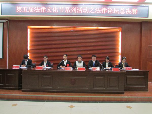 为宣传法律文化,创建和谐文明校园,提高师生的法律意识, 11月29日晚,第五届法律文化节之法律论坛决赛在模拟法庭正式拉开帷幕。莅临比赛现场的评委老师有法学院副教授、河南师范大学法律顾问、新乡市知名律师张荣现,法学院团委书记、2012级辅导员马淑明。