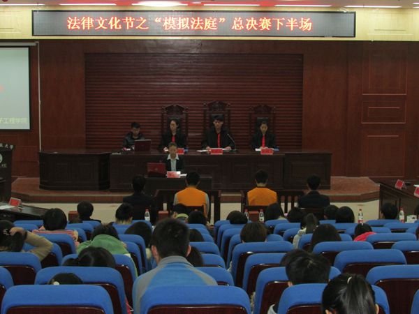 为使我校大学生了解庭审程序,增强法律意识,法学院举办模拟法庭活动。2013年12月1日下午,法学院在模拟法庭成功举办了模拟法庭总决赛下半场。法学院研究生工作秘书、2011级辅导员左红娟老师出席活动。