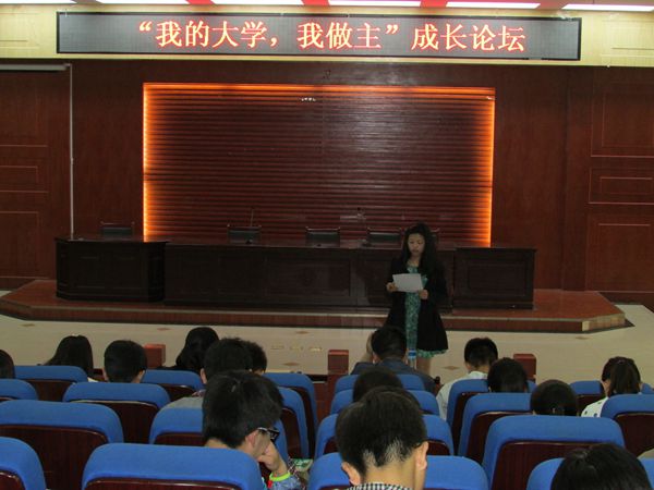 4月25日晚7点,模拟法庭座无虚席,法学院副院长华锋应邀做客成长论坛,向同学们做“我的大学,我做主”的专题讲座。院团委书记、2012级辅导员马淑明及2012级2013级部分同学聆听了此次讲座。