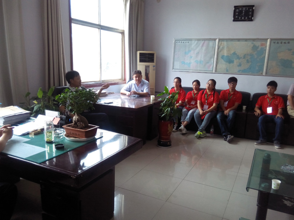 2014年7月8号上午,由河南省延津县东屯镇书记周培国、镇长崔光辉主持、河南师范大学暑期实践队伍全体队员参加的实践座谈会,在东屯镇政府办公室召开。会议就东屯镇农村低保现状、政府部门职能分工、实践队伍所要开展的活动及意义进行讨论。