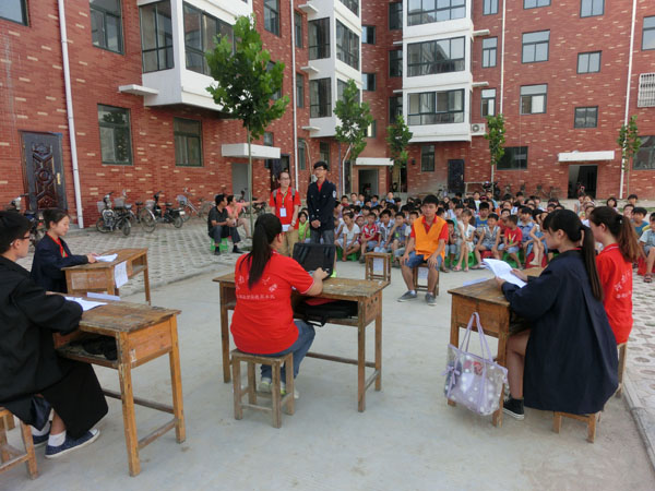随着我国社会现代化法治进程的加快,法律普及率不断提高,为更好的普及法律知识,增强未成年人法律意识,推动乡镇法治建设,实现中原法治新梦想,7月16日下午5点,河南师范大学法学院暑期社会实践法律援助志愿服务队在新乡市延津县东屯镇开展了“模拟法庭进乡村”活动。