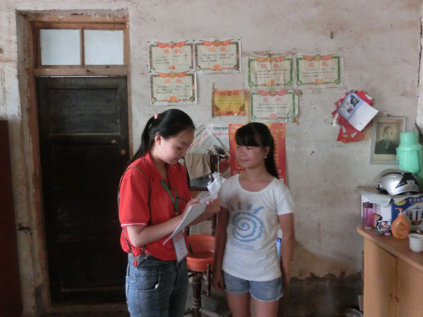 7月17日,“关爱留守儿童”志愿服务队来到了胙城乡袁庄村的留守儿童袁静琳家,了解她的生活学习情况。