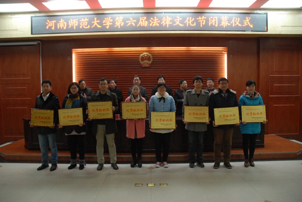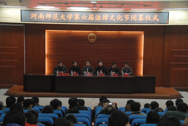 12月9日下午,由我校党委学工部、普法办主办,法学院承办的以“倡导博学崇法,弘扬和谐法治”为主题的河南师范大学第六届法律文化节在模拟法庭闭幕。我校副校长孙先科,学生处、宣传部、就业指导服务中心、校团委负责人,各学院政工干部及学生代表近350人参加了此次闭幕式。闭幕式由法学院院长黄进才主持。