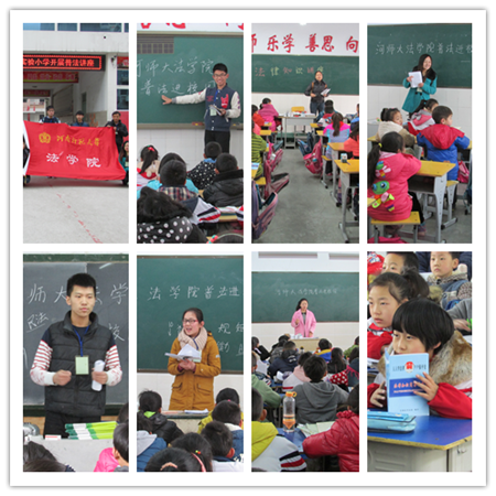 为进一步响应党中央“依法治校”的号召,增强青少年的法治意识和法治观念,创建和谐校园,构建和谐社会,1月13日上午,河南师范大学法学院大学生法律援助中心于新乡市铁西实验小学成功举行“送法进校”主题普法宣传教育讲座。由法学院团委书记马淑明,2012级兼职辅导员马亚伟带队,法学院12级本科生党支部成员组成的宣讲团给铁西实验小学的学生们奉上了一场别开生面的“法制小课”。