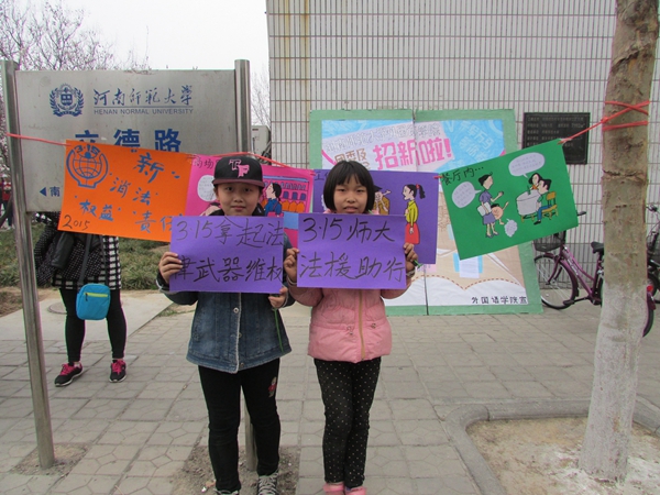 3月15日,由法学院举办的“3·15普法宣传”活动在我校万人餐厅西南角举行,法律服务部全体成员参加了本次活动。