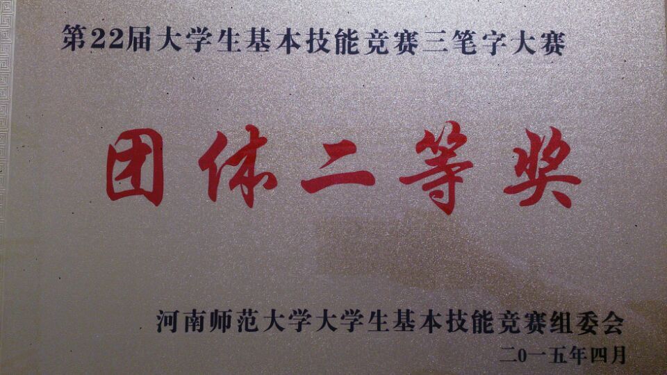 笔耕墨舞,激扬青春,师大学子展风采。426日上午,我校第22届大学生基本技能竞赛“三笔字”大赛在我校图书馆广场拉开了序幕。我院副院长华锋、团委书记马淑明参加了此次开幕式,我院选手积极参加了此次活动。最终获得团体二等奖的佳绩,多名选手获得个人单项奖和个人全能奖等荣誉。