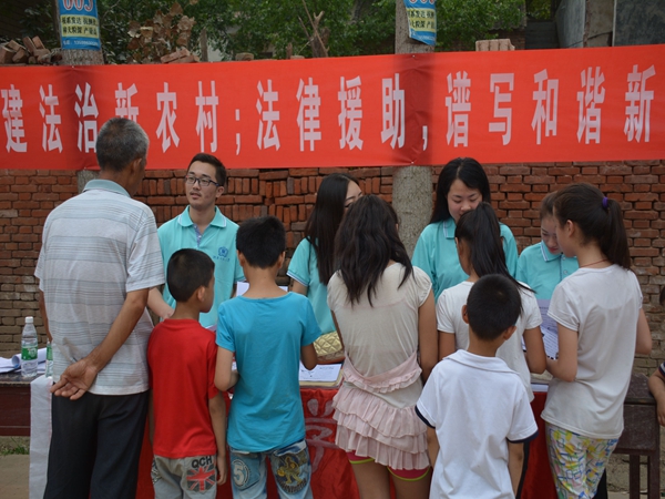7月8日上午,在河南师范大学法学院团委书记马淑明的带领下,河南师范大学“法律援助”志愿服务队来到原阳县阳阿乡韩庄村村头,设立法律咨询点,为村民解答法律疑惑。