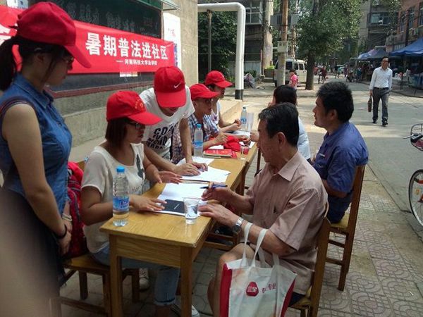 随着居民法律意识的不断增强,遇到纠纷希望得到法律援助的需求越来越迫切。为了帮助群众掌握一定的法律知识、更好地创建服务型社区,7月10日上午,河南师范大学法学院法律志愿服务队的成员来到新乡市洪门新型社区进行普法宣传活动。