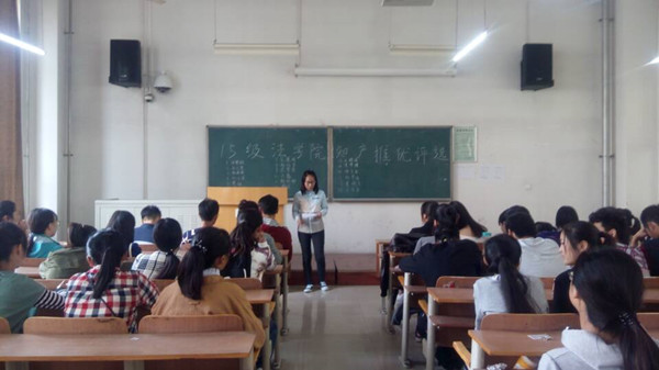 10月14日中午,法学院2015级知识产权班在东教2楼开展了优秀团员推优大会。这次大会由法学院团委组织部监督举行,知识产权班全体同学参加了此次班会。